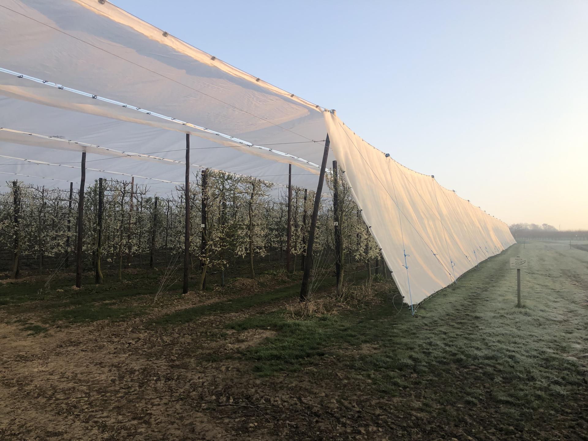 “En términos generales, los productos agrotextiles brindan una protección física contra diferentes amenazas (aves, granizo, insectos, exceso de radiación UV, lluvia, etc.) e influyen en el ambiente de cultivo (humedad, sombra, temperatura), lo que incluye la protección contra las heladas. Más concretamente, la malla actúa como una manta: mantiene el hielo en su superficie y atrapa el calor acumulado por el suelo durante el día y desprendido por la noche, mientras que de día reduce el calentamiento de los cultivos. De esta forma, la malla garantiza cierto equilibrio en las temperaturas, evitando las oscilaciones térmicas entre el día y la noche y aumentando la temperatura nocturna”, comenta el consejero delegado de la empresa italiana, Paolo Arrigoni.