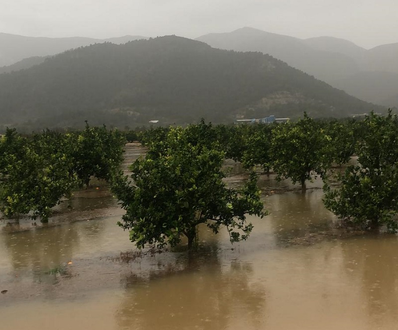 Según, AVA-ASAJA, los cítricos, las infraestructuras agrarias, las hortalizas de temporada y la ganadería se llevan la peor parte de un temporal que ha provocado daños por viento, frío, gota fría y granizo principalmente en las comarcas de La Ribera, L’Horta Sud, La Safor y La Marina. La valoración inicial, efectuada tras recabar información de agricultores y colaboradores de seguros agrarios, eleva las pérdidas en los cítricos –naranjas y mandarinas de la segunda mitad de la campaña– a 46,5 millones de euros. De ellos 39,6 millones corresponden a los frutos tirados al suelo debido a las fuertes rachas de viento, una cantidad que asciende a 132.000 toneladas ya que en algunas parcelas los daños alcanzan hasta el 80% de la producción pendiente de recolectar. Las inundaciones y la acumulación de agua en los campos, agravadas por los desbordamientos de ríos y barrancos, suponen 4,7 millones de pérdidas al afectar 500 hectáreas y provocar la pérdida de cosechas enteras e, incluso, en los casos más dramáticos, la futura muerte de los árboles. Finalmente, el granizo ha ocasionado daños puntuales en un millar de hectáreas, principalmente en La Ribera, L’Horta Sud y La Safor, con daños medios del 30% de la cosecha y unos perjuicios de 2,2 millones.