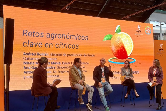 Durante la jornada, se celebró una mesa redonda en la que participaron Andreu Román, director de producción en Grupo Cañamás; Mireia Martínez, delegada de ventas de Bayer; Ana García, directora de la finca experimental Sinyent; y Antonio Pascual, empresario citrícola. Los ponentes señalaron que el sector atraviesa un momento de profunda transformación marcado por la presión del marco regulatorio europeo, la necesidad de avanzar en el uso de nuevas tecnologías y el impacto de las importaciones en la competitividad del producto nacional. En este contexto, destacaron la urgencia de acelerar la adopción de herramientas biotecnológicas, así como de modelos de manejo más sostenibles e integrados, que permitan mantener la productividad y la sanidad vegetal sin perder eficiencia ni capacidad de respuesta ante nuevas plagas y enfermedades.