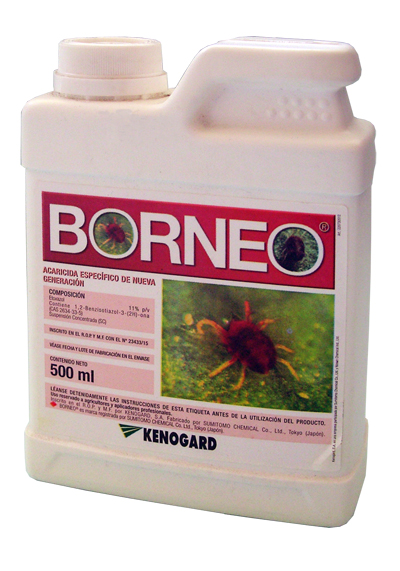 Borneo®, la elección inteligente contra ácaros tetraníquidos, es un acaricida descubierto y desarrollado por Sumitomo Chemical, y comercializado por Kenogard S.A. Está formulado a base de Etoxazol 11% SC, y es la principal solución acaricida utilizada en gran diversidad de cultivos en España y en un gran número de otros países.