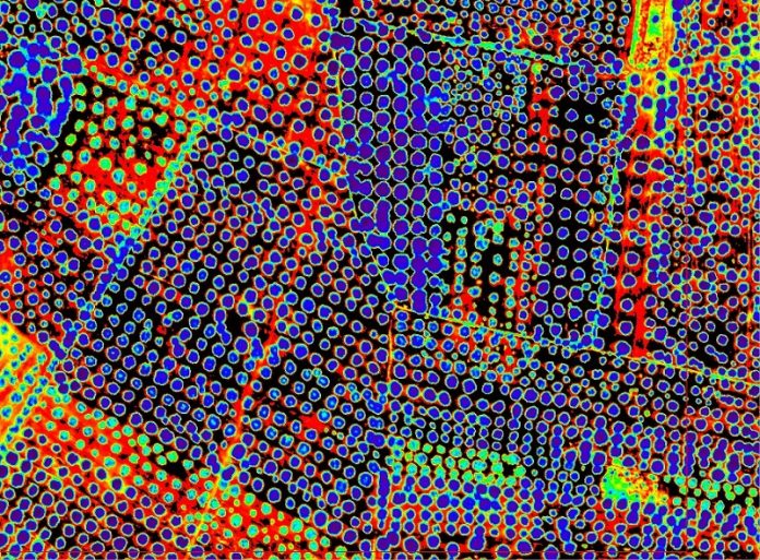 Imagen: Obtenida con sensores hiperespectrales en una zona afectada por X. fastidiosa (Pablo Zarco-Tejada).