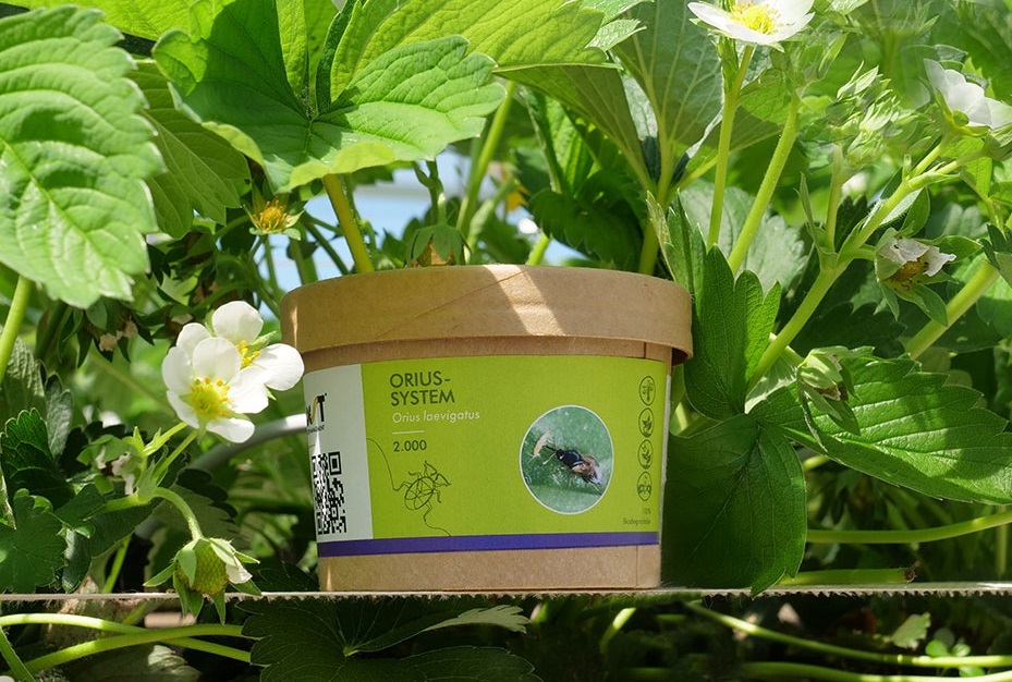 El nuevo envase biodegradable del Orius-System, de la empresa de control biológico Biobest, ha mejorado el establecimiento y rendimiento del depredador de trips Orius laevigatus esta temporada. El bote de plástico original se ha sustituido por un envase de cartón sostenible con tapa extraíble, que contiene una fórmula en gel para proporcionar agua a los insectos depredadores durante el transporte.