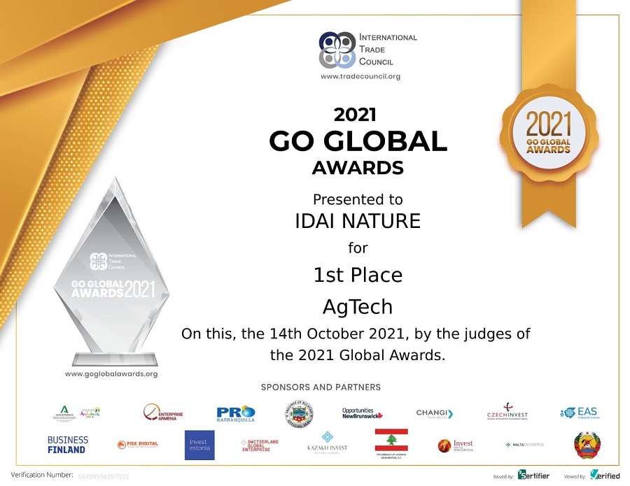 Idai Nature, compañía biotecnológica española del Grupo Rovensa, ha recibido el premio como mejor AgriTech del año en los Go Global Awards del International Trade Council, certamen que premia a las empresas que impulsan la economía con sus innovaciones, tecnologías y estrategias.