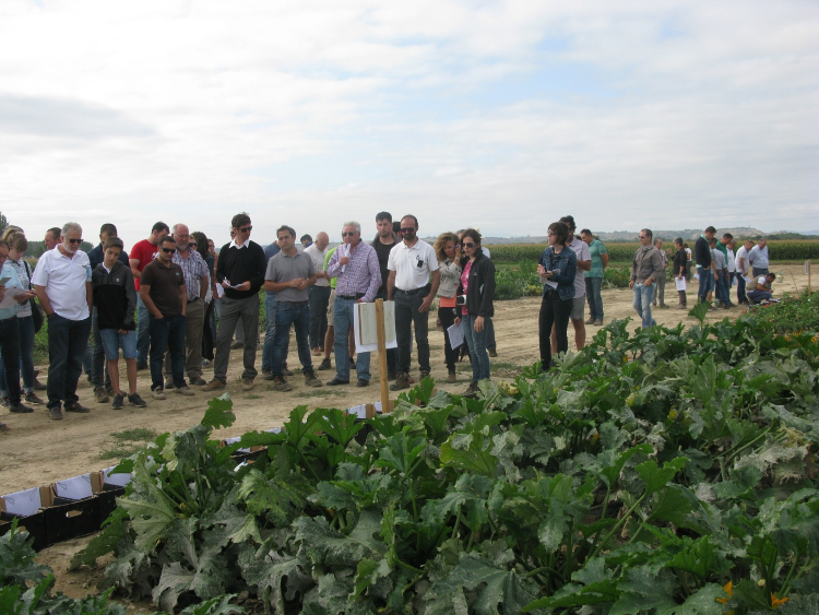 Inmaculada Lahoz, especialista de INTIA en producción agrícola y responsable de esta experimentación, explicó las particularidades de cada ensayo y de la campaña, indicando cómo ha influido la climatología tan variable de esta primavera-verano en los diferentes cultivos. Así, destacó que, en tomate, la industria demanda variedades de gran color, consistencia y grado Brix. También se realizaron ensayos con catorce variedades de calabacín, con el objetivo de encontrar aquellas variedades más resistentes al oídio. El técnico de INTIA Ricardo Biurrun, especialista en protección de cultivos, se encargó de presentar un ensayo de minimización de residuos insecticidas contra plagas de calabacín.