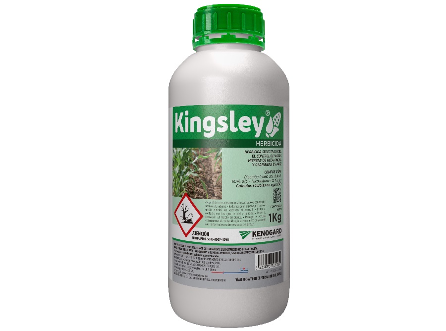 Kenogard ha reforzado su catálogo de soluciones para maíz con Kingsley®, herbicida sistémico en forma de gránulos solubles en agua (SG), compuesto por nicosulfuron y dicamba, dos materias activas herbicidas con modos de acción diferentes y complementarios que han demostrado un excelente efecto sinérgico, además de asegurar una adecuado manejo y prevención de la aparición de resistencias.