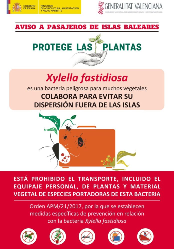 La consellera de Agricultura, Medio Ambiente, Cambio Climático y Desarrollo Rural, Elena Cebrián, ha destacado la importancia de informar y concienciar a la población, ya que «evitar que la Xylella fastidiosa se disperse fuera de las Islas Baleares es responsabilidad de todos». Por ello, ha pedido la colaboración ciudadana para impedir la introducción en la Península de esta bacteria peligrosa para muchos vegetales. Además, está prohibido el transporte, incluido el equipaje personal, de plantas y material vegetal de especies portadoras de esta bacteria.