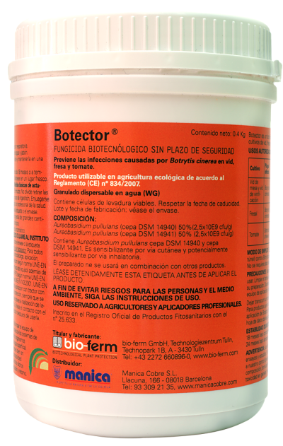 BOTECTOR es un fungicida biotecnológico que se adapta a las nuevas exigencias de la agricultura: eficacia frente a botrytis sin residuos ni plazo de seguridad, respetando al agricultor, al cultivo y a la fauna auxiliar. Estas características lo convierten en un producto único y de futuro.
