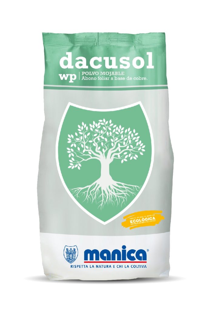 El departamento técnico de Manica Cobre ha anunciado el lanzamiento de DACUSOL, un nuevo abono foliar que además de cubrir las necesidades de la planta, es eficaz contra golpe de sol ?las quemaduras causadas por la radiación solar- y tiene una acción repelente en la picada y puesta de insectos. DACUSOL ha sido desarrollado por el departamento de I+D de Manica conjuntamente con IVALSA-CNR-Firenze, centro de investigación de referencia en Italia.
