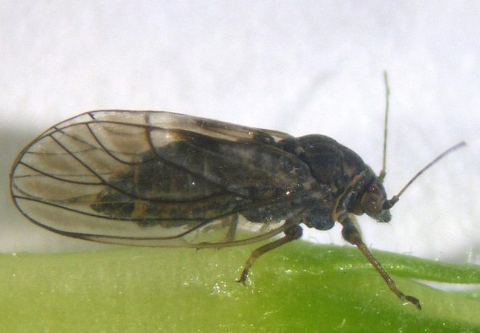 En la mayoría de las comarcas frutícolas de Aragón, las hembras de la psila del peral (Cacopsylla pyri) ya han comenzado a realizar la puesta en las bolsas y en las lamburdas de las zonas más soleadas de los perales. El Centro de Sanidad y Certificación Vegetal aragonés recomienda actuar ya para eliminar la mayor cantidad de adultos.
