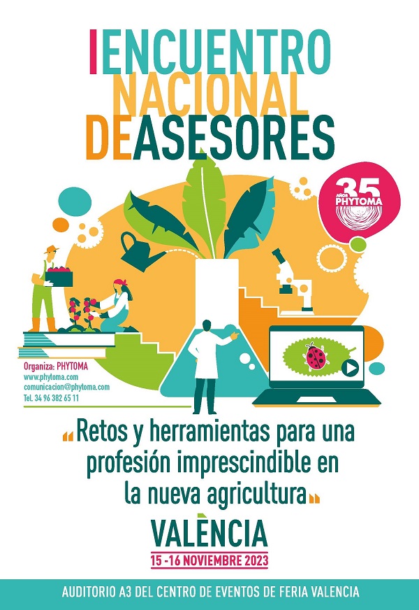 Ya se ha abierto el plazo de inscripción para el Encuentro Nacional de Asesores, primer foro dedicado exclusivamente a estos profesionales, que se celebra en el Centro de Eventos de Feria Valencia el 15 y 16 de noviembre. Organizado por la editorial Phytoma, que este año conmemora su 35 aniversario, la primera edición lleva por título Retos y herramientas para una profesión imprescindible en la nueva agricultura y aspira a reunir en un mismo espacio a los asesores en gestión integrada de plagas del país para abordar los principales desafíos conjuntos a los que se enfrentan.