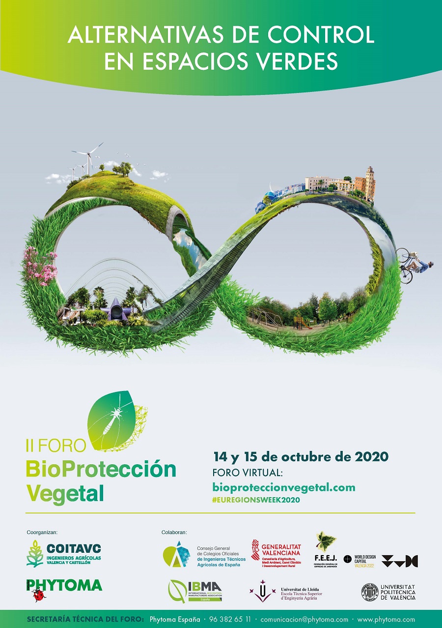 El Foro de BioProtección Vegetal, organizado por el Colegio Oficial de Ingenieros Técnicos Agrícolas y Graduados de Valencia y Castellón (COITAVC), en colaboración con Phytoma, abordará en su segunda edición las Alternativas de control en Espacios Verdes. El programa consta de cuatro bloques: el primero, dedicado a la situación actual de la Gestión Integrada en espacios verdes y sus principales problemas, como la falta de productos fitosanitarios autorizados; el segundo, en el que se presentarán algunas alternativas sostenibles de control de los espacios verdes, como el uso de nematodos entomopatógenos para el control del tigre del plátano (Corythucha ciliata), el control biológico por conservación de la mosca blanca de los naranjos ornamentales en Barcelona, el ejemplo de la ciudad de Huesca en la aplicación de programas de control biológico y las oportunidades de los fitosanitarios biológicos en espacios verdes ornamentales; el tero, dedicado a la gestión de la sanidad vegetal en distintas ciudades, como Barcelona, Valencia y Sevilla, y en viveros; y el cuarto, que se centrará en nuevos organismos nocivos invasores de los espacios verdes, como Cydalima Prespectalis, la polilla del boj, un grave problema para esta planta ornamental y forestal en Cataluña, y Xylella fastidiosa, que afecta a numerosas especies ornamentales en las Baleares.