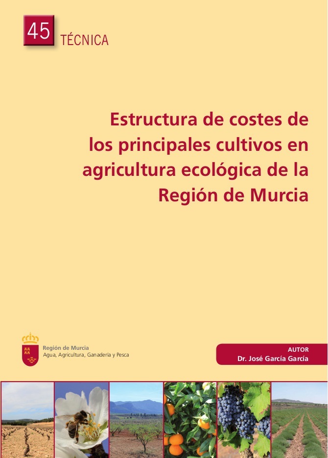 La Consejería de Agua, Agricultura, Ganadería y Pesca de Murcia acaba de publicar el libro Estructura de costes de los principales cultivos en agricultura ecológica de la Región de Murcia, de José García, del Equipo de Bioeconomía del Instituto Murciano de Investigación y Desarrollo Agrario y Medioambiental (IMIDA) y colaborador habitual de Phytoma.