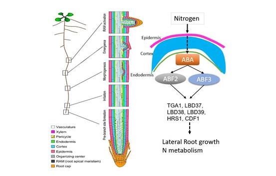 La integración de los datos obtenidos ha permitido establecer un nuevo modelo de regulación genética en el que la endodermis es el centro regulador clave de las respuestas a nitrato y se han identificado los factores de transcripción ABF2 y ABF3, relacionados con las respuestas a ABA, como reguladores centrales de las respuestas endodérmicas a nitrato. Además, se ha comprobado que estos factores controlan la expresión del 59% de los genes que responden a nitrato en la endodermis. En conjunto, estos resultados indican que ABF2 y ABF3 son factores reguladores clave de la respuesta temprana a nitrato implicados en la modulación de la arquitectura del sistema radicular.