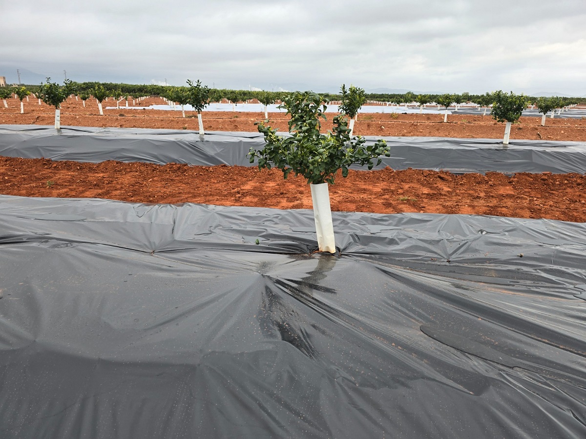 Además de beneficiar la protección fitosanitaria, las cubiertas metalizadas tienen efectos positivos en el microclima del cultivo, promoviendo un incremento en la temperatura del suelo y reduciendo el estrés hídrico al mejorar la retención de humedad, lo que acelera el crecimiento y la producción de los cítricos.