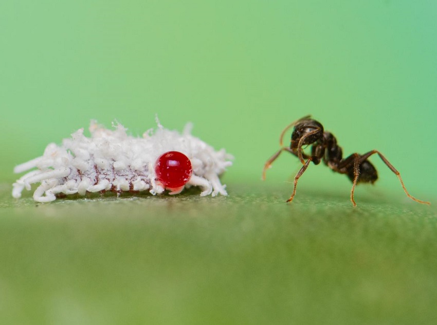 El Instituto Valenciano de Investigaciones Agrarias (IVIA) ha descubierto una nueva característica con la que algunos coccinélidos pueden mejorar su defensa frente a los ataques de hormigas: el depredador Cryptolaemus montrouzieri puede adquirir ácido carmínico cuando se alimenta de la cochinilla del carmín Dactylopius opuntiae, que es muy abundante en las chumberas presentes en la Comunidad Valenciana. De esta forma, cuando son atacados por las hormigas, liberan esa toxina en concentraciones que disuaden a las hormigas.