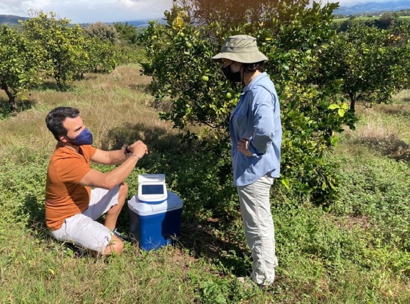 Los ensayos de laboratorio demostraron que el nuevo kit podía detectar diferentes aislados bacterianos asociados al HLB, independientemente del tipo (planta o insecto) y origen de la muestra a analizar. Para testarlo en condiciones naturales, a la vez que se comparaban los resultados con los obtenidos mediante técnicas de PCR en tiempo real, parte del equipo de Bacteriología del IVIA se desplazó a dos países donde la enfermedad del HLB está presente y extendida: Brasil y Costa Rica. Allí se realizaron dos prospecciones aleatorias y las muestras fueron analizadas con el kit del presente estudio y con un protocolo de PCR ya validado. La comparación reveló que la sensibilidad diagnóstica alcanzó el 72,73%, la precisión relativa fue del 85,12% y la especificidad diagnóstica, del 100%. “Estos valores, para una técnica que no utiliza ADN purificado, a diferencia de la PCR, son muy elevados. El coste del procesamiento de la muestra es menor que el de la PCR y, además, los resultados se obtienen en menos de 35 minutos. Esto hace que el kit sea una herramienta muy adecuada para un diagnóstico rápido in situ”, concluyen los investigadores.