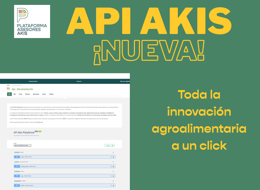 La Plataforma de Asesores AKIS, impulsada por el Ministerio de Agricultura, Pesca y Alimentación, ha puesto en marcha una nueva API (Interfaz de Programación de Aplicaciones) de datos abiertos que permitirá a los usuarios registrados descargar y reutilizar contenidos relacionados con el sector agroalimentario en España.