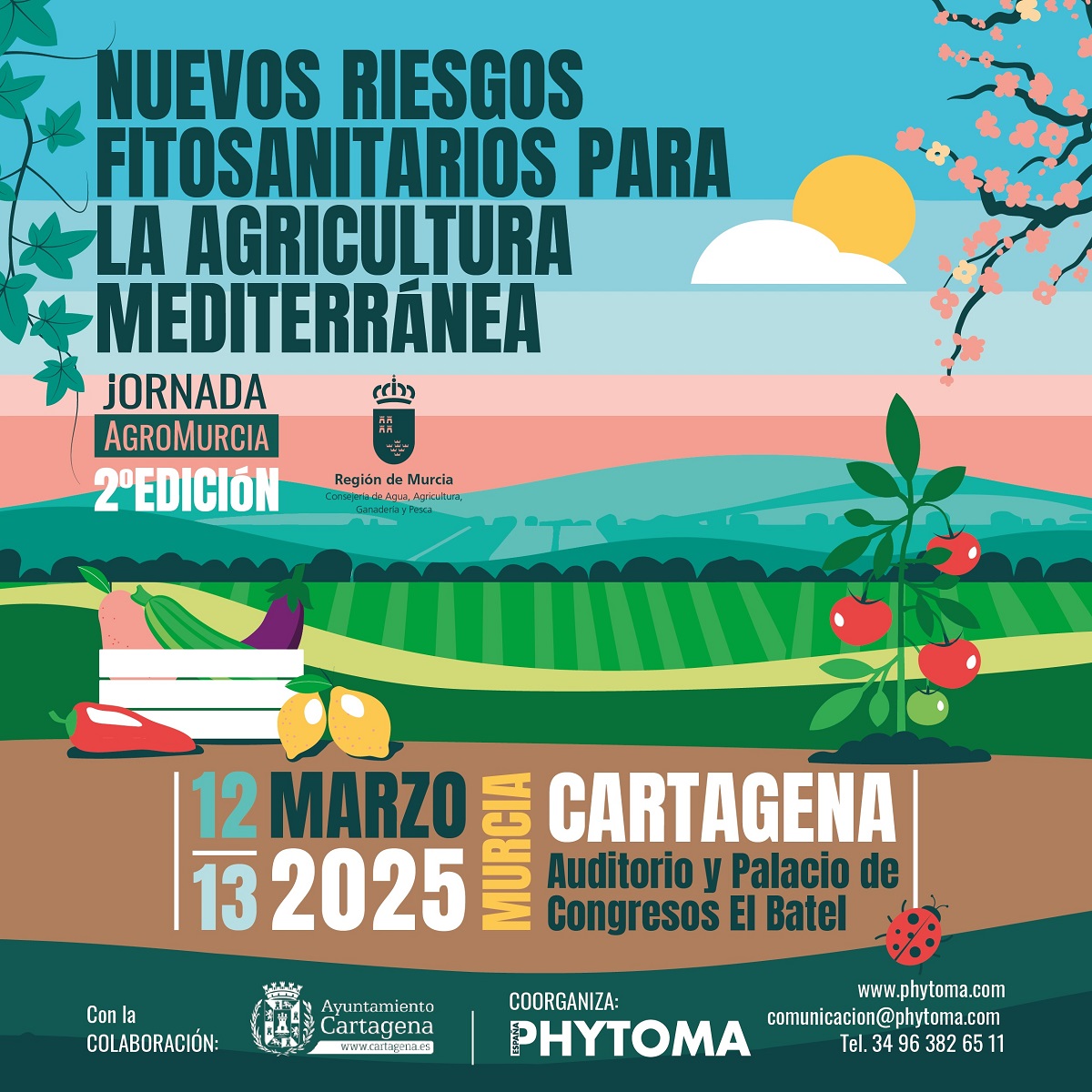 Organizado por la Consejería de Agua, Agricultura, Ganadería y Pesca de la Región de Murcia y Phytoma, esta edición de AgroMurcia se celebrará en formato híbrido (presencial y virtual) para ampliar el público asistente y facilitar su seguimiento a los profesionales interesados que no puedan desplazarse a Cartagena. Los interesados en seguir las jornadas a distancia pueden inscribirse hasta el 5 de marzo.