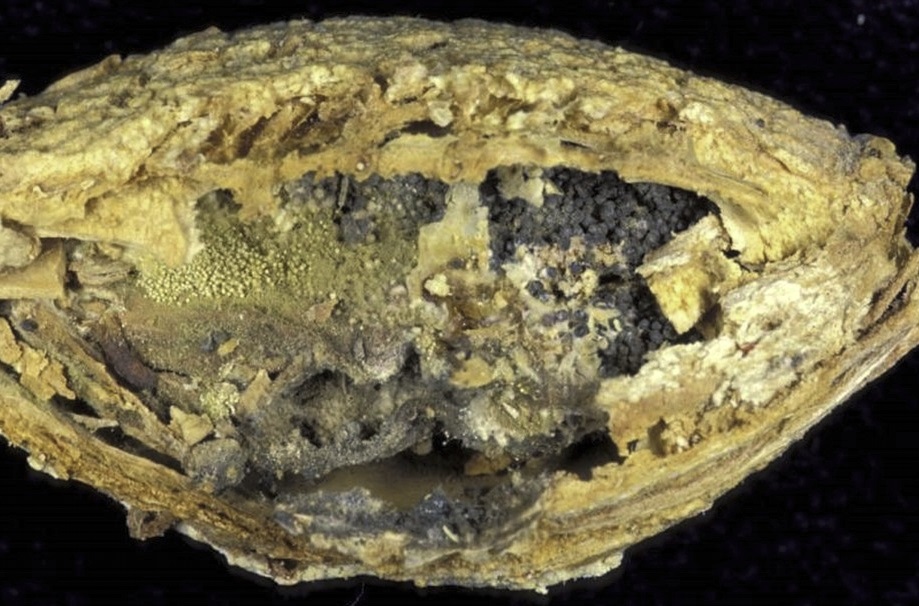 Las aflatoxinas son micotoxinas producidas por hongos de suelo del género Aspergillus, principalmente A. flavus y A. parasiticus. Por su alta toxicidad, están reguladas en numerosos alimentos para consumo humano y animal. Ambas especies crecen sobre restos de material vegetal produciendo un gran número de conidios aerovagantes que pueden colonizar y contaminar diferentes cultivos como maíz, cacahuete, algodón y frutos secos, entre otros. En 2018, Phytoma ya publicó un artículo en el que investigadores de la Universidad de Córdoba y la Universidad de Davis (California) revisaban la importancia actual, la etiología, biología y control de este problema emergente en los frutos secos españoles.