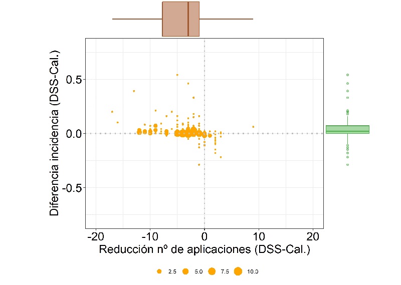 Los sistemas de ayuda en la toma de decisiones (DSS, por sus siglas en inglés) pueden reducir a la mitad el número de aplicaciones fungicidas y mantener el mismo nivel de eficacia en el control de las enfermedades que las estrategias habituales a calendario, según un estudio realizado por el IVIA y el Instituto Nacional de la Investigación Agronómica de Francia (INRAE).