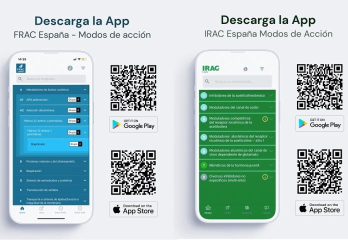 FRAC España (Comité de Acción contra la Resistencia a Fungicidas) e IRAC España (Comité de Acción contra la Resistencia a Insecticidas) han lanzado sus respectivas apps de consulta para dispositivos móviles, tanto en IOs como en Android, que permiten la consulta de las sustancias activas autorizadas en España, con indicación del grupo al que pertenecen según sus modos de acción.