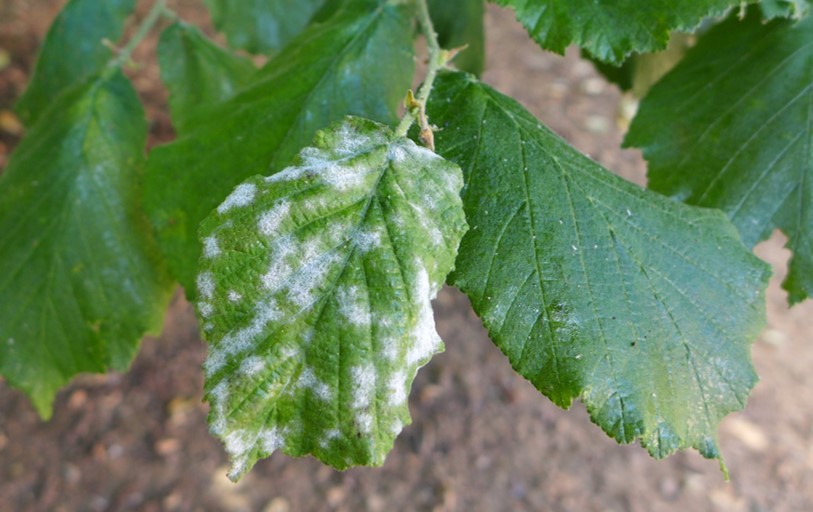 En la cuenca mediterránea, la enfermedad del oídio en avellanos (Corylus avellana L.) está causada por Phyllactinia guttata. Se presenta a finales de verano o al inicio del otoño, por lo que sus daños en el cultivo son muy limitados y apenas tiene impacto en la producción. Sin embargo, en abril de 2021 se observó un brote inusual de la enfermedad en hojas de avellanos que provocó una rápida afectación en plantaciones comerciales del Camp de Tarragona. A diferencia de P. guttata, aparecieron las manchas redondeadas de micelio blanco tanto en el haz como en el envés de las hojas. Meses más tarde, en junio, se observó micelio blanco, también en los involucros de los frutos.