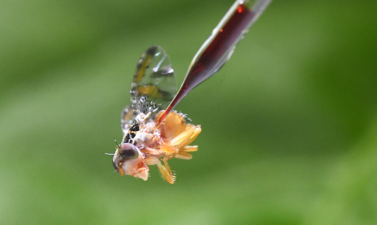 La técnica de interferencia de ARN (RNAi), con el que se consigue silenciar genes esenciales, se ha estudiado para el control de numerosas plagas, pero hasta ahora no se había investigado su aplicación en C. capitata. En este estudio pionero, los investigadores probaron siete genes candidatos microinyectando dsRNA específico en moscas adultas. Los resultados fueron sorprendentes: varios genes se vieron significativamente reducidos, lo que provocó un aumento de la mortalidad de las moscas en comparación con las tratadas con un dsRNA de control. Tres de los dsRNAs, dirigidos a genes homólogos a la subunidad beta de la ATP sintasa (ATPsynbeta), una ATPasa vacuolar (V-ATPase) y la proteína ribosomal S13 (RPS13), lograron reducir a la mitad la probabilidad de supervivencia de las moscas 48 horas después de la inyección.
