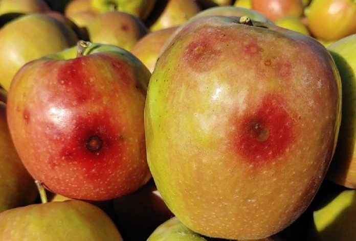 Las enfermedades fúngicas causadas por el género Colletotrichum, que son cada vez más frecuentes por la subida de la temperatura media, suponen un peligro para algunos frutales, como almendro y manzano, entre otros cultivos. Las enfermedades producidas por Colletotrichum en manzano, descritas como la podredumbre ácida (apple bitter rot) y la mancha foliar de Glomerella (Glomerella leaf spot), son relativamente frecuentes en Europa central y Norteamérica. Son causadas por distintas especies del género Colletotrichum, entre las que destaca C. gloeosporioides como la más frecuente. La podredumbre ácida provoca lesiones redondas, ligeramente deprimidas y corchosas en los frutos, que no superan los 3 mm de diámetro y que en algunos casos pueden progresar y generar podredumbres; los síntomas de la segunda consisten en manchas marrones necróticas en las hojas que crecen rápidamente, provocando clorosis generalizada y defoliación intensa.