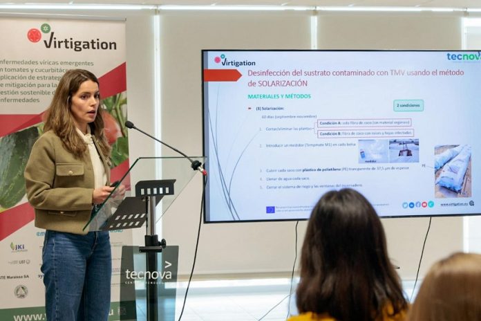 El Centro Tecnológico TECNOVA acogió una jornada en sus instalaciones del Parque Científico Tecnológico PITA (Almería) para presentar los primeros resultados de Virtigation, proyecto internacional centrado en combatir enfermedades víricas en tomates y cucurbitáceas, como el virus del fruto rugoso marrón del tomate (ToBRFV) y el Virus de Nueva Delhi (ToLCNDV), en invernaderos hortícolas.