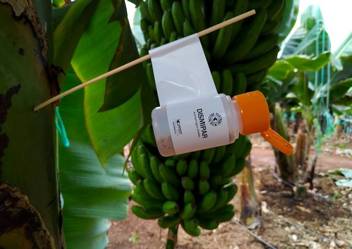 Koppert España ha realizado las primeras sueltas de Acerophagus artelles, una avispa parásita autóctona de las islas Canarias, capaz de luchar contra la plaga de la cochinilla (Dysmicoccus grassii) de la platanera. Con el lanzamiento de Dismipar® (marca con la que Koppert comercializa este parasitoide), la empresa de biocontrol ofrece a los productores la primera solución biológica contra la cochinilla, la plaga más dañina para la platanera canaria.