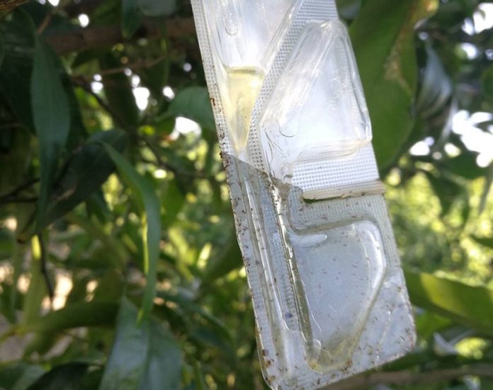 Massó Agrodepartment acaba de lanzar al mercado un dispositivo de control biotécnico formulado con piretrina natural y feromonas para el control de tres importantes plagas de la citricultura mediterránea: Delottococcus aberiae (cotonet de les Valls), Aonidiella aurantii (piojo rojo de California) y Planococcus citri (cotonet).