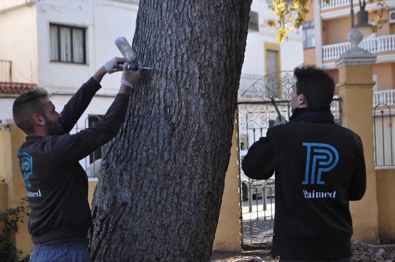 «La cantidad de producto va a depender de las dimensiones del árbol ya que se realizan inyecciones cada 15 o 20 centímetros de perímetro de tronco. Si es un pino pequeño, se pueden realizar tres inyecciones, mientras que si es un pino grande se han de realizar unas doce. El tratamiento ya es efectivo con una vez que se realicen las inyecciones, aunque si un año la plaga es muy persistente, será necesario repetirlas. Lo óptimo es hacer este tratamiento de octubre a enero, todos los años para prevenirla», explica la técnico de Paimed.