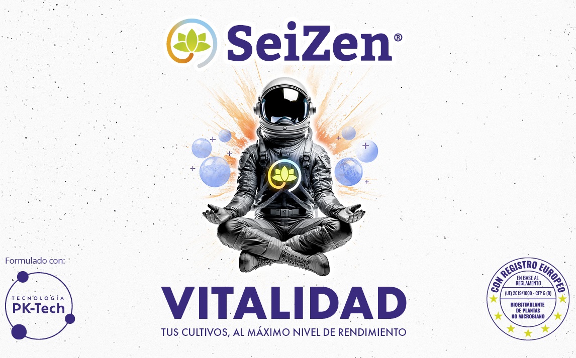 SeiZen presenta una amplia etiqueta, que va desde los cultivos extensivos hasta los hortícolas, pasando por los leñosos, ornamentales y plantas medicinales o aromáticas. Es un bioestimulante líquido idóneo para potenciar la productividad de los cultivos, concede a la planta la capacidad de aumentar su potencial energético y actúa como mejorador fisiológico: estimula la división, el crecimiento y diferenciación celular, y permite la mejora en el rendimiento de los cultivos. También está diseñado para preparar a los cultivos frente a situaciones desafiantes y de mayor demanda energética.