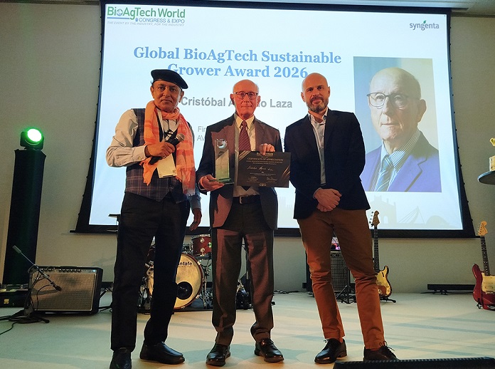 Syngenta ha participado en el 7º Congreso BioAgTech World Congress & Expo 2026, celebrado esta semana en Valencia, donde ha presentado su innovación en soluciones biológicas como respuesta a las necesidades reales de los agricultores y los desafíos de la producción agrícola mundial. Este foro internacional ha reunido a líderes de la industria biotecnológica para analizar las últimas innovaciones en bioestimulantes, bioinsecticidas y biofertilizantes, así como para distinguir a personalidades que se significan por una trayectoria profesional en apoyo de la innovación y la agricultura sostenible. Durante la cena de gala, el congreso otorgó su primer premio Global BioAgTech Sustainable Grower Award 2026 al presidente de la Asociación Valenciana de Agricultores (AVA-ASAJA), Cristóbal Aguado, en reconocimiento a la defensa de los productores y al impulso de la experimentación agraria, la innovación y la transferencia tecnológica a través de la Finca Sinyent.