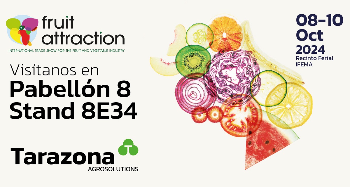 Tarazona Agrosolutions participa por primera vez en la Fruit Attraction (Pabellón 8, Stand 8E34), que se celebra en IFEMA Madrid del 8 al 10 de octubre, para presentar sus soluciones agrícolas más innovadoras y sostenibles.