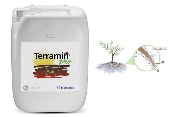 Terramin® Pro es una formulación a base de L-α-aminoácidos de rápida asimilación en la rizosfera obtenidos de forma natural con la exclusiva tecnología Enzyneer® que se comercializa desde 2018 en diferentes cultivos por fertiirrigación. Anna Botta, Product Manager de Bioibérica Plant Health, explica que se trata “del primer prebiótico de Bioibérica diseñado para estimular la microbiota local del suelo y potenciar la fertilización del cultivo de manera que se pueda reducir la dependencia de los abonos químicos en el nuevo marco del Pacto Verde Europeo”.