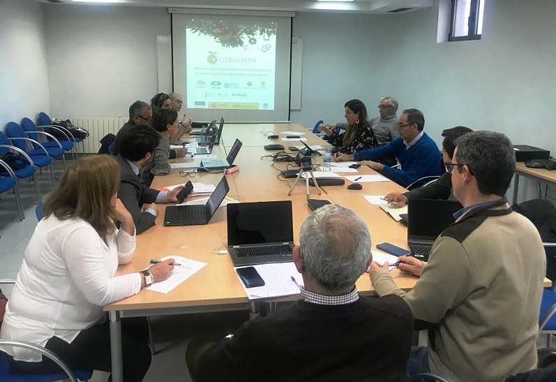 En febrero se celebró, en el Instituto de Ingeniería de España en Madrid, la primera reunión presencial de lanzamiento de CITRUSTECH, en la que participaron representantes de todas las entidades que forman el grupo operativo. Y durante marzo se mantuvieron varias reuniones de coordinación y de evaluación del impacto de la situación de alarma sanitaria, dado que coincide con un momento crítico, el periodo de recolección de cítricos de variedades de industria.
