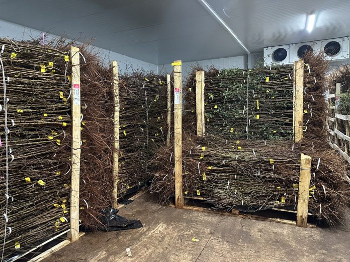 La campaña de planta a raíz desnuda se prolongará hasta abril, gracias a la puesta en marcha de cámaras frigoríficas. En total, son más de 150 m2, con control de humedad y temperatura, que le permite además la inyección de ozono para asegurar la entrega de planta libre de plagas y enfermedades. “Gracias a estas cámaras, logramos una mejor gestión en el vivero con la planta a raíz desnuda, ofreciendo también flexibilidad al productor a la hora de la entrega”, añade la directora comercial.