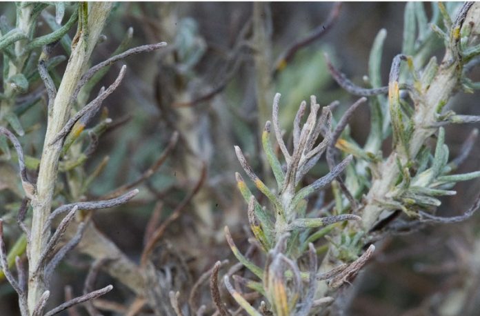 Foto: Helichrysum stoechas infectado en Tárbena.