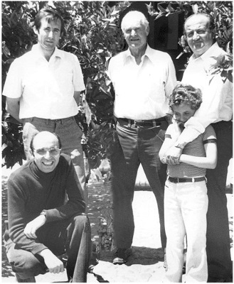 Figura: Antonio Arias, primero por la izquierda, figura junto al profesor Snyder en una visita de este a un estudio que se realizaba sobre un Fusarium de frutales (1975).