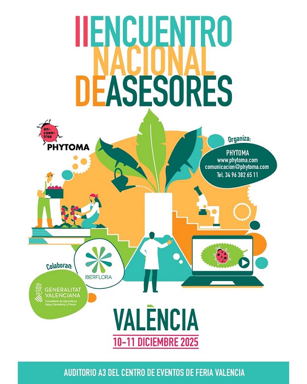 Tras el éxito de la primera edición, que en 2023 congregó a más de 600 asesores de todas las comunidades autónomas, y de otros países, Phytoma organiza, en colaboración con la Conselleria de Agricultura, Agua, Ganadería y Pesca de la Generalitat Valenciana, el II Encuentro Nacional de Asesores, que volverá a reunir en Feria Valencia, el 10 y 11 de diciembre, a estos profesionales imprescindibles en la nueva agricultura.