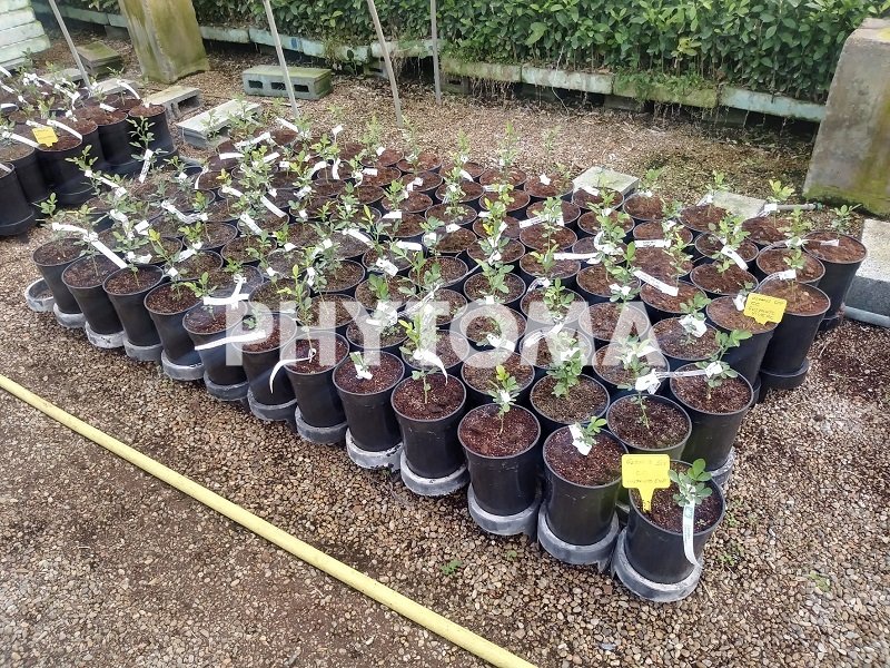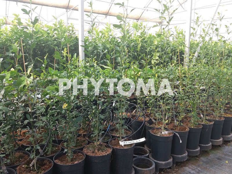 Foto: Aspecto general de patrones de Citrus macrophylla de 20 meses, micorrizados durante el semillero e injertados con limón en el vivero comercial BENIPLANT (Benicarló, Castellón)